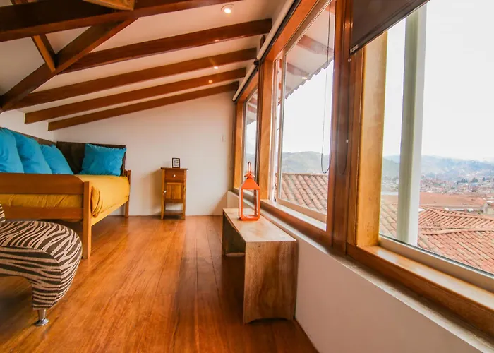 Das 1-Zimmer-Qosqo Belvedere, Apartamento En Cuesta San Blas Cusco liegt 25 Minuten Fußweg von der Inka-Stätte Q'inqu entfernt und bietet einen Blick auf den Garten. Das Apartment bietet einer Terrasse mit einem Ausblick auf die Berge und liegt nur 550 Meter vom Centro Historico De Cusco.